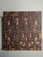Planche ZigZag en noyer et érable, 16 pouces carrée. Résistante, antidérapante, douce pour les couteaux. Bout de grain.