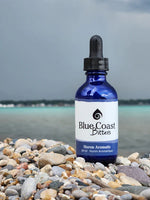 Conditionné dans une bouteille en verre bleu cobalt de 60 ml avec un compte-gouttes en verre. Carte de recettes incluse.