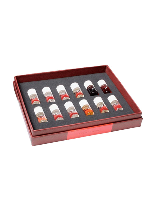 Il comprend une collection de 6 arômes en flacons et une brochure explicative (uniquement en anglais):