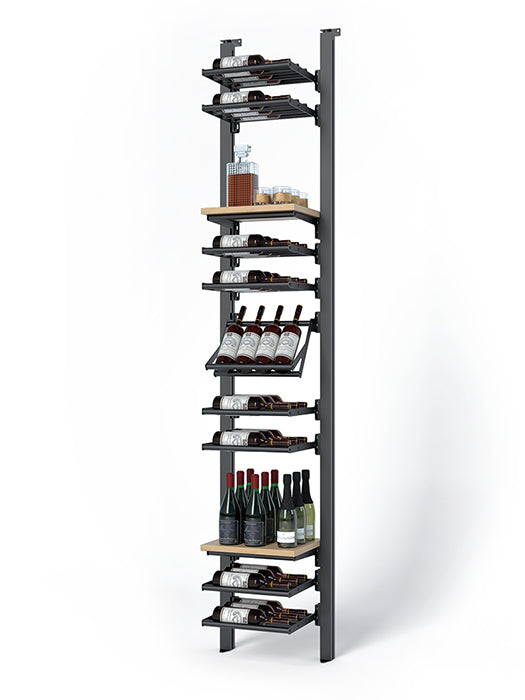 Composé d’aluminium, la robustesse de cette collection est à la juste mesure de l’élégance de ses lignes épurées. Il permet des possibilités d’arrangement impressionnantes ainsi qu’une grande souplesse dans la présentation des bouteilles. Idéal pour le cellier ou la cave à vin vitrée, ses configurations conviennent autant aux espaces restreints qu’aux grands aménagements.