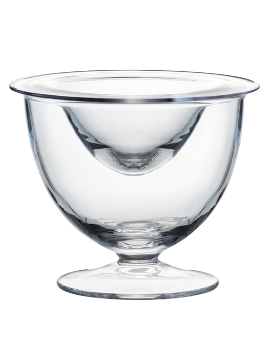 Ce service à caviar raffiné est composé de deux pièces en verre soufflé bouche : un plat supérieur peu profond au bord large et plat, conçu pour accueillir le caviar, suspendu au-dessus d’un compartiment inférieur incurvé destiné à la glace. Ce design ingénieux permet de garder le caviar parfaitement frais tout en offrant une présentation élégante.