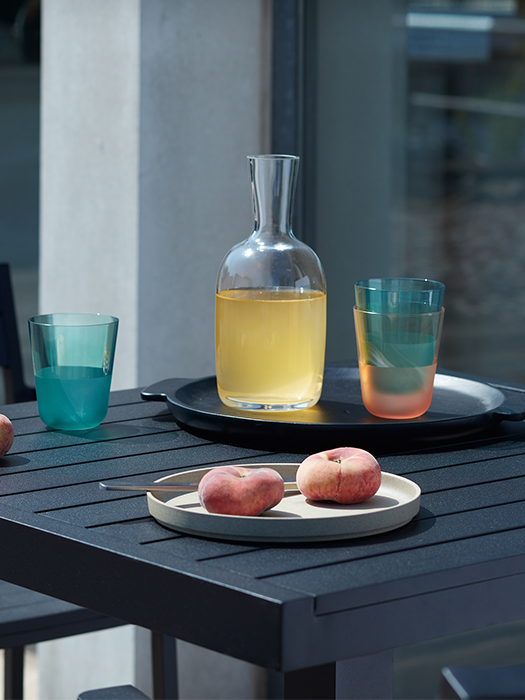 Alliant modernité et artisanat, la carafe Utility présente une silhouette architecturale à parois épaisses et une forme étagée distinctive. Fabriquée en verre soufflé bouche, elle est dotée d'une anse en verre clair et se décline en version transparente ou colorée, selon votre style de table.