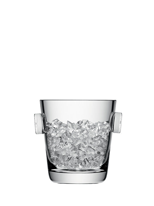 Un seau à champagne en verre aux parois épaisses et à la base lourde, soufflé à la bouche par des maîtres verriers. Un savoir-faire expert est nécessaire pour façonner et appliquer à la main les anses en forme de disque de chaque côté. En raison de sa nature artisanale, la taille de cet article peut varier légèrement.