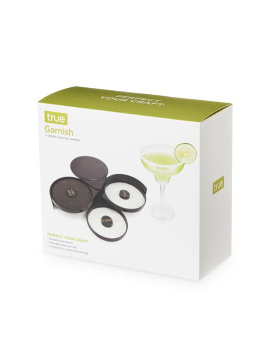 Ce ravier à 3 étages est parfait pour le sel, le sucre et le jus de citron vert. Le sel pour les margaritas, le sucre pour les daiquiris ou d'autres garnitures pour vos spécialités maison.