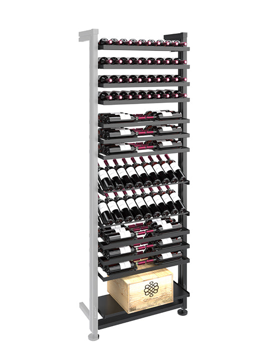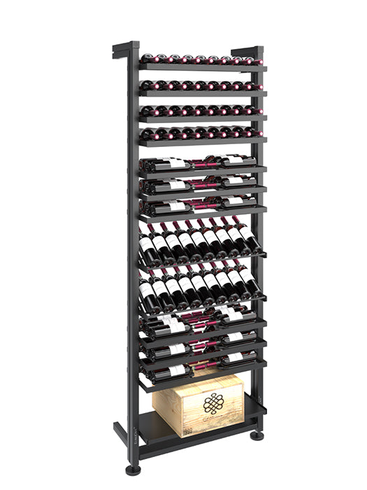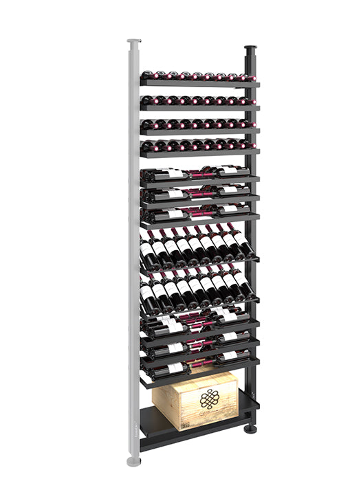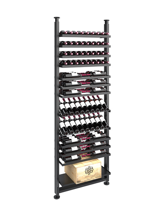 Modulo-X vous offre une totale liberté de conception qui s'adapte à votre collection de vin et à votre espace. Sobre et légère, la structure en aluminium autorise toutes les dispositions en fixations murales ou plafond (jusqu'à 3.40m).