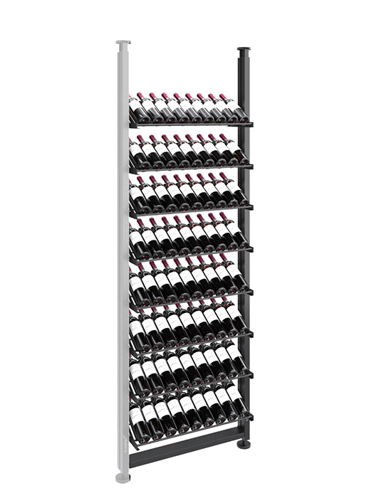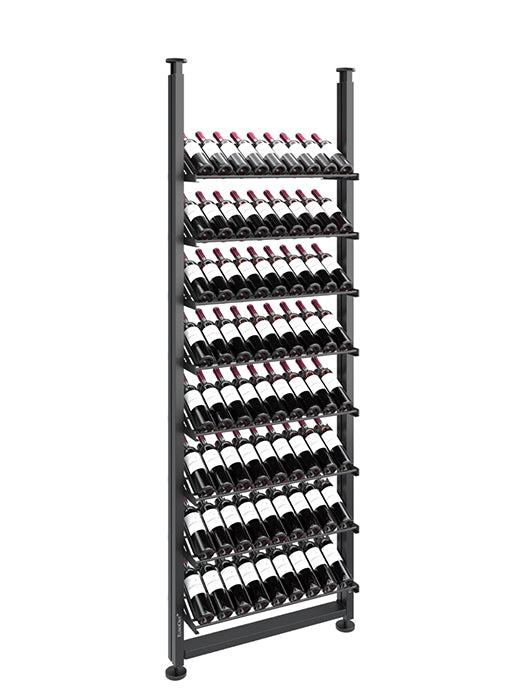 Modulo-X vous offre une totale liberté de conception qui s'adapte à votre collection de vin et à votre espace. Sobre et légère, la structure en aluminium autorise toutes les dispositions en fixations murales ou plafond (jusqu'à 3.40m).