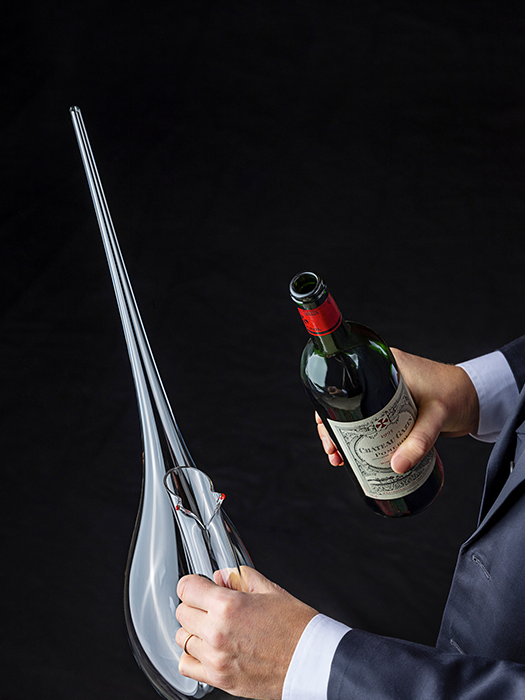 Fabriquée en cristallin soufflé à la main, chaque pièce est unique. Son long col permet une décantation optimale et un service précis, même à distance – un atout pour les sommeliers et les amateurs de vins exigeants.