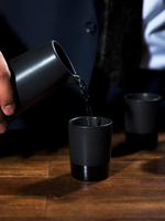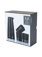 Service élégant en grès noir mat : une carafe (440 ml) et 4 tasses (90 ml). Parfait pour le saké, les cocktails ou les spiritueux.