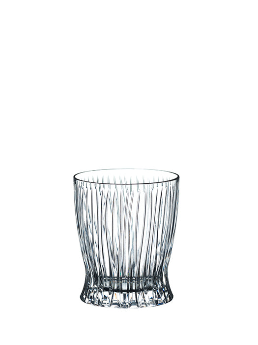 Ce verre à la base épaisse et décorée fait partie de la collection Riedel Bar tumbler, inspirée de l’époque Art Nouveau. Elle présente un contraste avec les verres à vins puristes et sans motifs de Riedel. La collection FIRE se distingue par ses décorations dynamiques rappelant des flammes, développé par Georg Riedel.