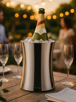 Le refroidisseur à vin à double paroi est conçu pour conserver vos vins blancs, rosés et champagnes bien frais, tout en offrant une présentation soignée.