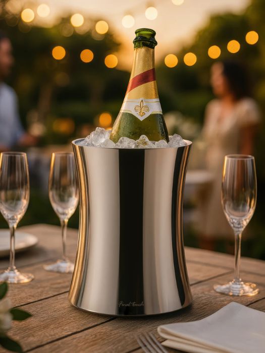 Prix unitaire / parRefroidisseur à vin Final Touch en acier inoxydable à double paroi, conçu pour maintenir vins, rosés et champagnes au frais sans condensation.