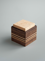 Boîte en noyer minimaliste avec insertions d’érable. Pour sel, épices, bijoux ou thé. Élégante, pratique, artisanale. Fait au Québec