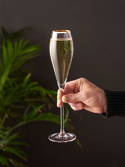Portez davantage de toasts avec notre paire festive de flûtes à champagne ornées d'or ! Fabriquées en cristal sans plomb et décorées de la plus légère trace d'or sur le bord, ce set ne manquera pas d'étonner.