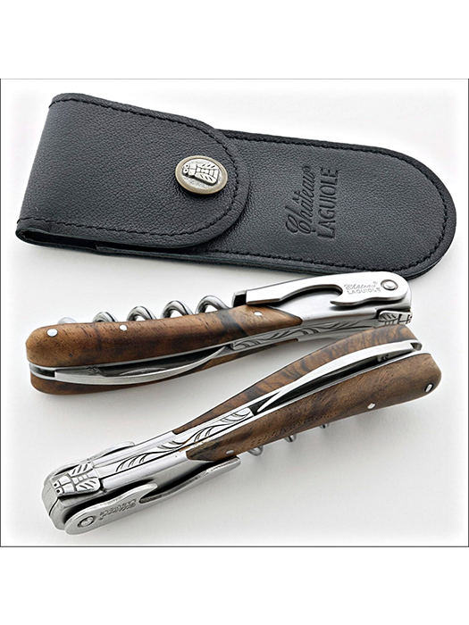 Originally designed in 1993 by Master Sommelier Guy Vialis, Château Laguiole has become the benchmark among luxury corkscrews for professional sommeliers worldwide. Each corkscrew comes in a gift box, with a Made-in-France leather belt sheath and a manufacturer registration card to validate authenticity and warranty.