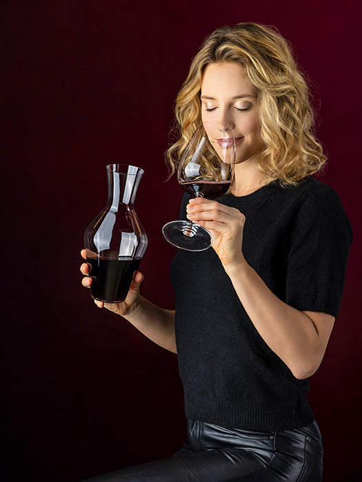 Unit price / perThe RIEDEL Veloce decanter is a beautiful blend of form and function, designed to enhance the drinking experience of a variety of wines, including ripe reds, young whites and champagne. This carafe is not only practical, it is also aesthetically pleasing due to its size. It is designed to be versatile, easy to use and dishwasher safe, and an everyday luxury item.