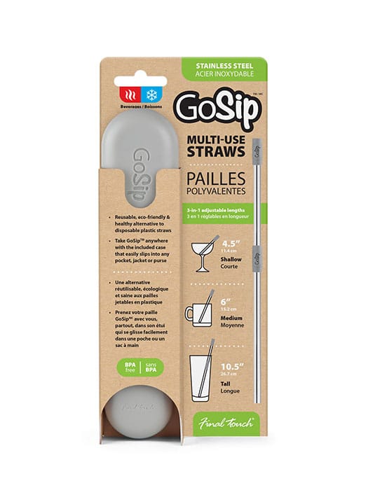 This straw kit is the eco-friendly and healthy alternative to the usage of plastic straws. Brin your Go-Sip kit everywhere with its convenient case easy to store in a pocket, a bag or a purse.
