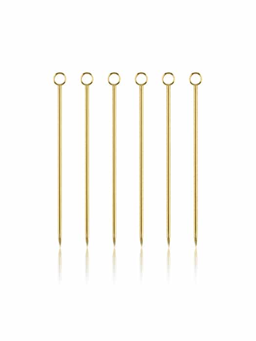 Unit price / perPick your poison. Each cocktail pick in this classic set of six is finished with a small steel ring, ideal for propping an olive in your martini or a brandied cherry in your Manhattan.