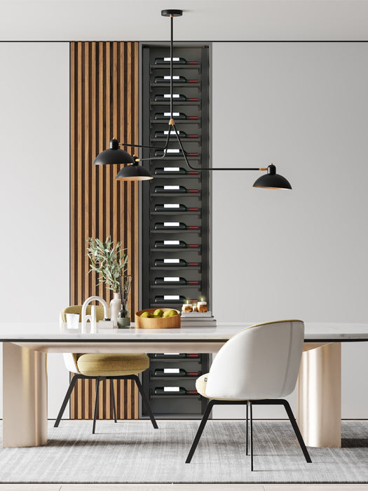 Made of aluminum, this collection's sturdiness is matched by the elegance of its clean lines. It offers impressive arrangement possibilities and great flexibility in bottle presentation. Ideal for the cellar or glass wine cellar, its configurations are equally suited to small spaces and large-scale layouts.