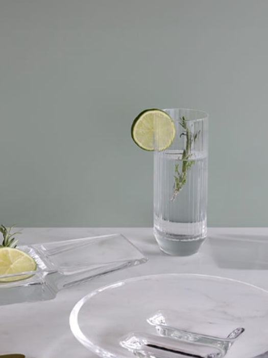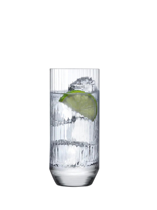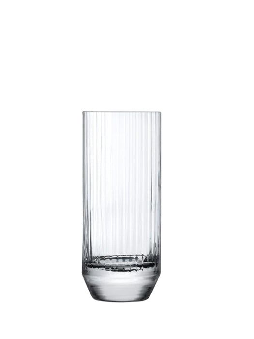 This chic cocktail glass is the perfect complement to any dining table. Cut from lead-free clear crystal and engraved with a raised linear pattern, this circus-inspired series offers a unique blend of tradition and playful charisma.