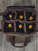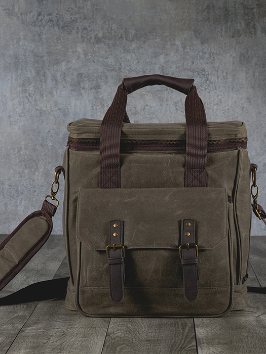 Carry up to 6 wine bottles in style with this waxed canvas cooler bag. Includes removable divider, waterproof base, and a front pocket for accessories.