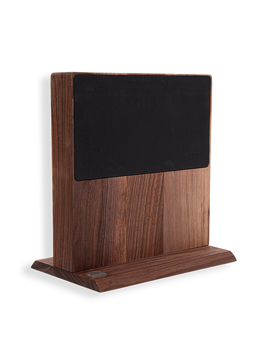 Block à couteaux magnétique en noyer et cuire, fabriqué au Canada