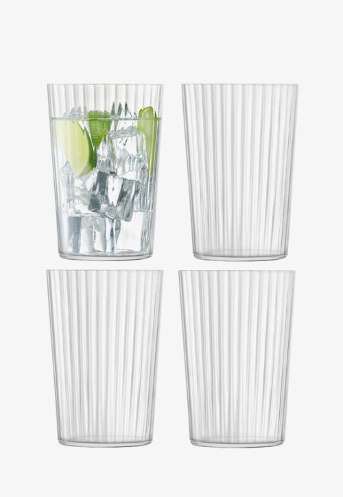 Unit price / perAdd a modern, functional touch to your table with the Gio Line 19 oz tumblers by LSA, offered in a set of 4. With their stackable shape, thin walls, and linear texture, these tumblers are elegant, versatile, and practical.