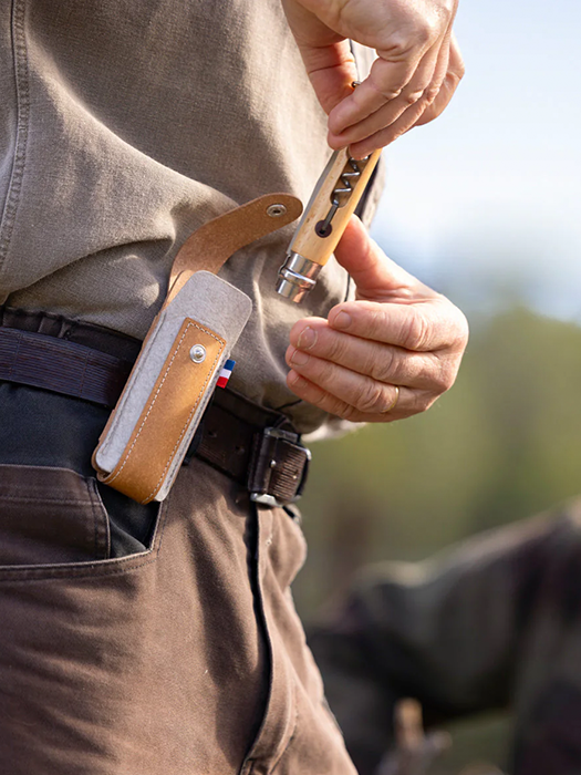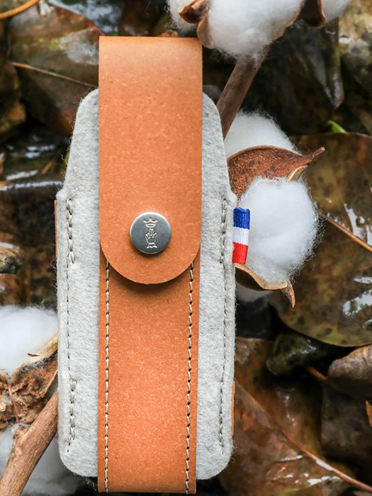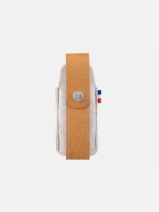 Outdoor M case in regenerated leather and R-PET felt. For your favorite corkscrews or Opinel knives No. 07 to No. 09 and Effilés. Made in France.