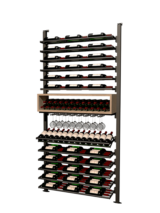 Made of aluminum, this collection's sturdiness is matched by the elegance of its clean lines. It offers impressive arrangement possibilities and great flexibility in bottle presentation. Ideal for the cellar or glass wine cellar, its configurations are equally suited to small spaces and large-scale layouts.