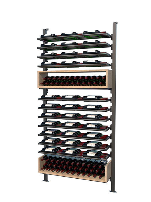 Unit price / perMade of aluminum, this collection's sturdiness is matched by the elegance of its clean lines. It offers impressive arrangement possibilities and great flexibility in bottle presentation. Ideal for the cellar or glass wine cellar, its configurations are equally suited to small spaces and large-scale layouts.