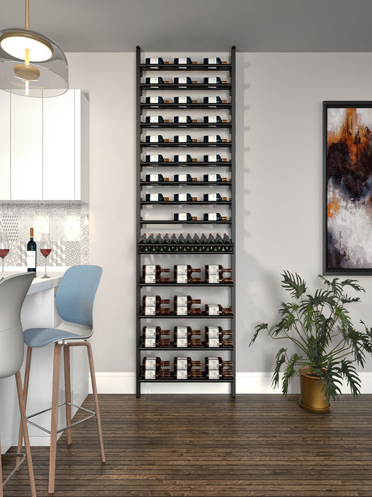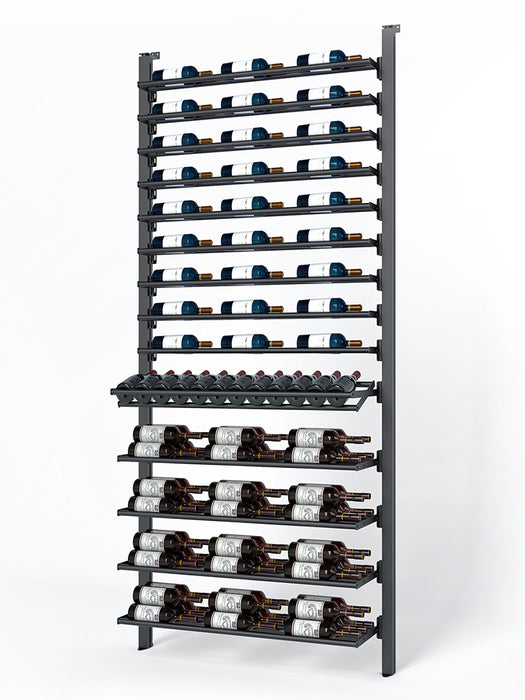Made of aluminum, this collection's sturdiness is matched by the elegance of its clean lines. It offers impressive arrangement possibilities and great flexibility in bottle presentation. Ideal for the cellar or glass wine cellar, its configurations are equally suited to small spaces and large-scale layouts.