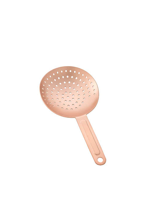 A strainer that looks like a ladle with holes in it. It is used to strain liquids from a Boson Shaker or wide-mouth mixing glass. In this way, the ice doesn't slip when draining from the can or mixing glass, allowing a cocktail to be poured smoothly and quietly.