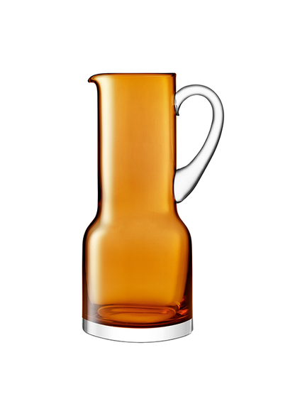 The Utility Jug blends modern design with traditional craftsmanship, featuring a bold stepped silhouette and thick, mouth-blown glass walls. Finished with a clear glass handle, it is available in both clear and cased-coloured glass options to suit any contemporary setting.