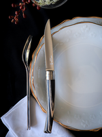 Unit price / perThe Table Chic set brings together four elegantly designed table knives, presented in a rigid blue cardboard case designed to protect and carefully store the knives.