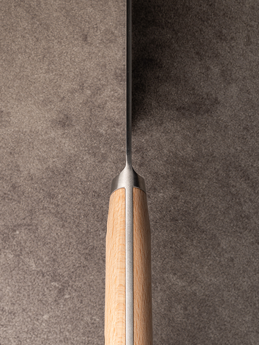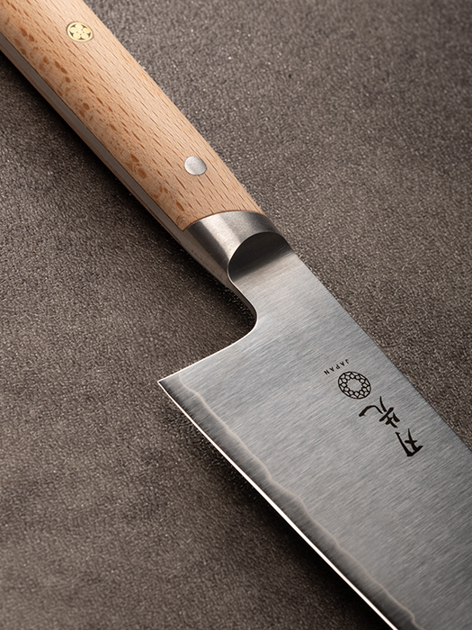 Petty knife, VG10 plated steel blade, forged in Japan, beechwood handle handcrafted in Canada.