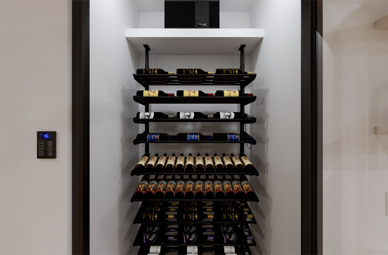 This compact system cools up to 500 cubic feet and offers excellent efficiency by drawing in the warmer air which accumulates at the ceiling, cooling and dispersing the air throughout the environment. The compressor is located in a remote location and the evaporator (cold side) mounted in the cellar. Since space in a small cellar is vital, the Platinum Mini-Split offers a compact size paired with powerful efficiency. A licensed HVAC or refrigeration technician is required for the installation.