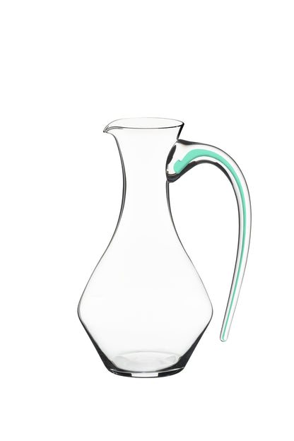 Carafe FAM Cabernet soufflée bouche, avec anse colorée. Artisanale, élégante, pour 750ml.