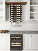 Ce support pour verres s'installe parfaitement au-dessus ou au-dessous d'une colonne de bouteilles vous donnant accès rapidement à une coupe au moment de la dégustation.